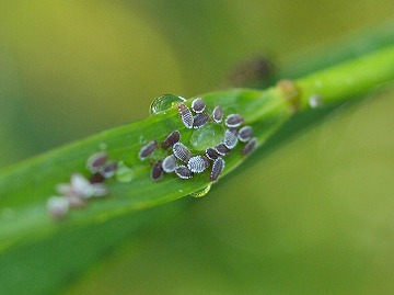 ![]() エゴノネコアシアブラムシが葉に取り付いていますが、野菜の害虫ではありません。 |