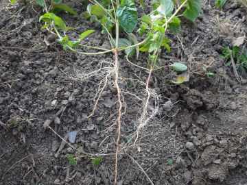 ![]() 引き抜くと、ずるずると強靭な根がそそまま抜けてきます。 下部の分枝の状態がよく分かります。 |