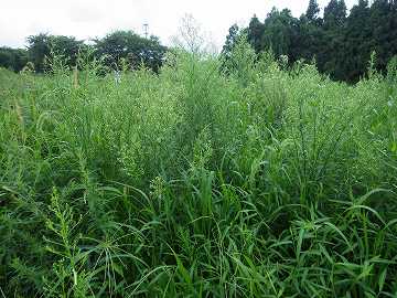 ![]() イヌビエ、アシボソ、メヒシバと草むらを作っています。 |