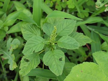 | イヌビユ(犬莧) 学名:Amaranthus blitum 分類:ヒユ科・ヒユ属、1年草 分布:全国 生育地:畑、道ばた 高さ:20~40cm 花期:7~10月 花色:緑(花穂) |