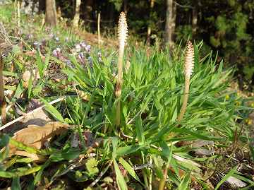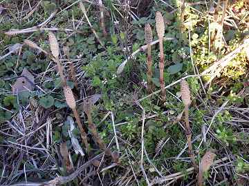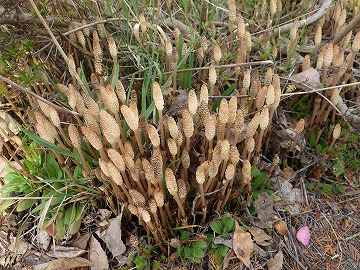 ![]() ツクシはスギナの花、高さは10〜25p。 早春、スギナに先立ち生えます。 |