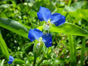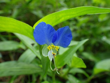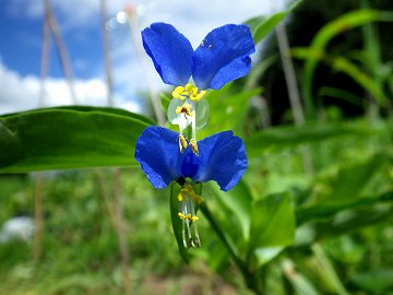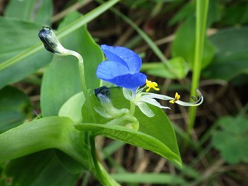 春に芽吹き、6月になると鮮やかな青い花を付けるようになります。 花の大きさは横寸で2p前後、朝に開花し夕方近くになるとしぼんで見えなくなります。 茎は地上を這い、節から根を下ろしながら分枝し広がります。切り取って地面に置くと根付くことがあります。 湿気を帯びたところを好み、畑の中や土手、日当たりでも日蔭でもぐんぐん成長し、花からは想像つかないたくましさがあります。 雨が続き、久しぶりに畑に出るとビックリするぐらいはびこっている時があります。1年草ですが、繁殖力が強く手ごわいです。 |