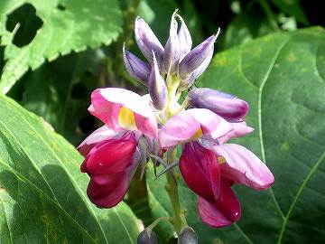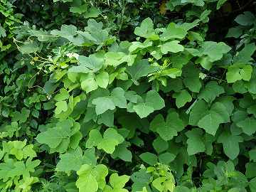 | クズ(葛) 別名:ケチヂミザサ 学名:Pueraria lobata | 戻る | ||