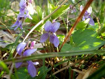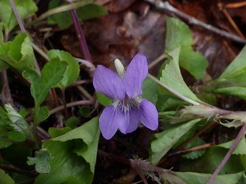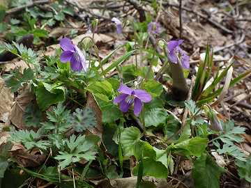 ![]() タチツボスミレ(Viola grypoceras)です。 畑の林縁で多く見られます。花色は青紫、大きさは横寸で16oぐらいで葉はハート形。 |