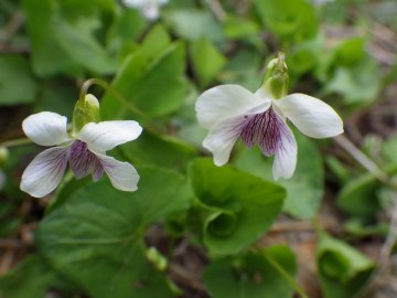 ![]() シロバナオオタチツボスミレ(Viola kusanoana f. alba)です。オオタチツボスミレの白花種で日本海側に多いです。 |