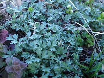 ![]() 葉に大きな切れ込みあり、特有の香りがあります。 |