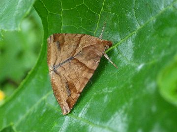 前翅長20mmぐらいの茶色の蛾。前翅のもやもやとした班紋を雲に見立てて 畑では、夏にたまに見かけるぐらいで、数は少ないです。 幼虫の食草はマメ科とのことですが、畑の野菜の被害はなさそうです。 酷似したものに、少し小型のニセウンモンクチバがいます。 |