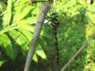 ![]() 赤トンボ類は支柱の先端に止まりますが、オニヤンマは支柱の側面に止まるのでしょうか。 |