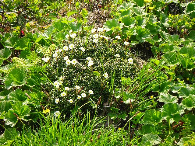 高山の岩場に生える10cmに満たない常緑小低木。葉は密生し、マット状になる。