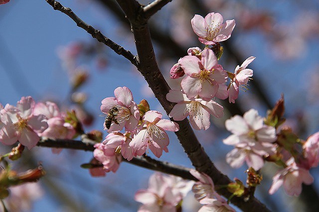 タイトル : 桜満開。ミツバチが蜜を吸っています 投稿 : あいちゃん