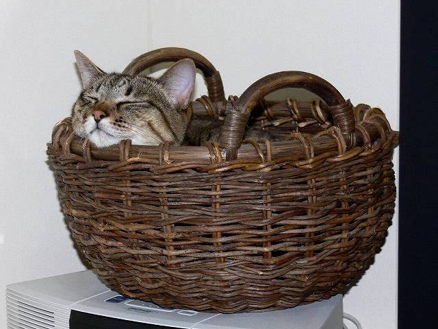 ポンちゃんは、時々かご猫になって眠ります。