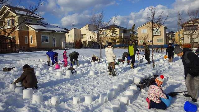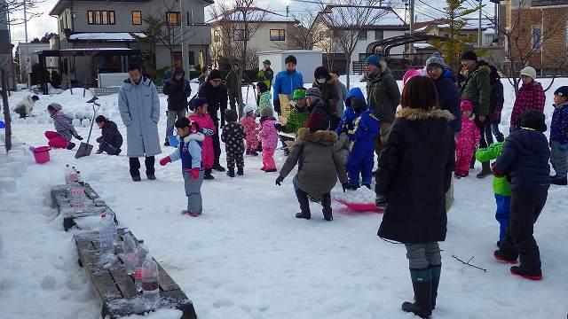 的当てゲーム、ミニかまくら作り、多くの子供たちが集まりました