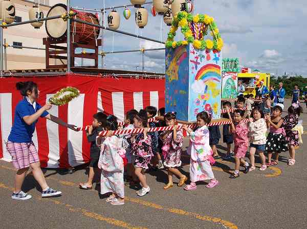 かわいい御所野幼稚園園児による絵とうろうかつぎ