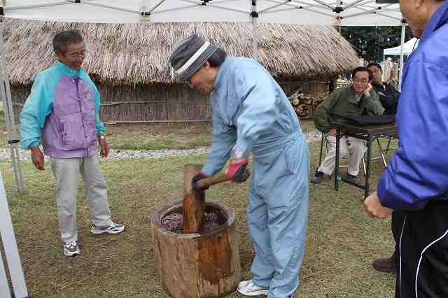 餅つきです。もうすぐ古代米入りのお餅が出来上がります。